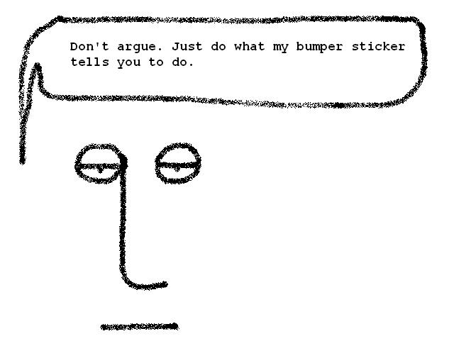 You must have that other bumpersticker that says “Coexist Somewhere Else”.