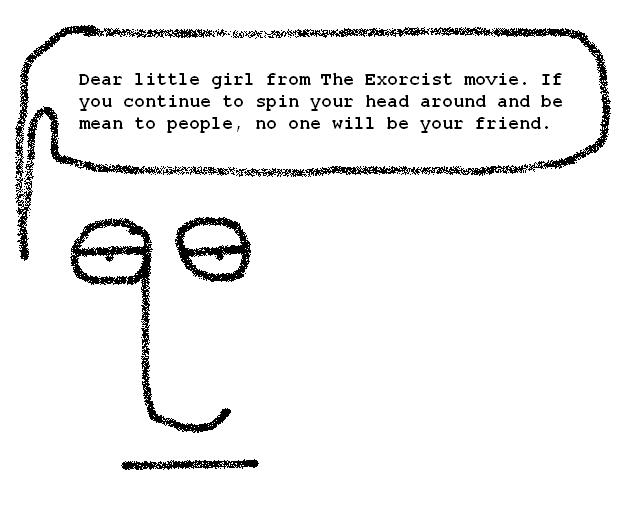 Kids Just Need A Little Guidance Posted by quo1 on August 27, 2013 Posted in: Cartoon, Humor, Musings. Tagged: demon possession, horror movies, movies, parenting, scary, the exorcist. 1 Comment