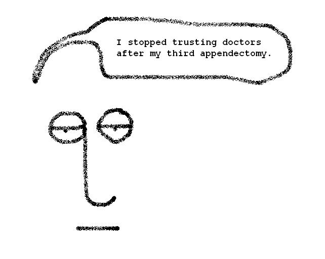 Enough Is Enough Posted by quo1 on November 24, 2014 Posted in: Cartoon, Humor, Musings. Tagged: AMA, doctors, health, hospitals, ignorance, medical, medicine, surgery, trust. 5 Comments