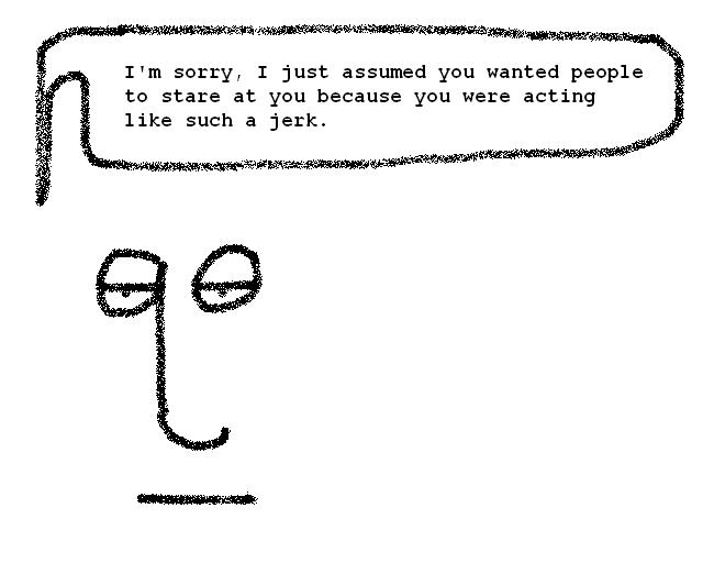 What The Hell Are You Looking At? Posted by quo1 on June 1, 2013 Posted in: Cartoon, Humor, Musings. Tagged: anger, attention, needs, social courtesy. 33 Comments