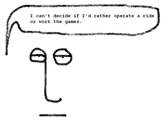 Carny Dreams Posted by quo1 on June 2, 2013 Posted in: Cartoon, Humor, Musings. Tagged: carnival, employment, fair, fairground, job, midway. Leave a comment