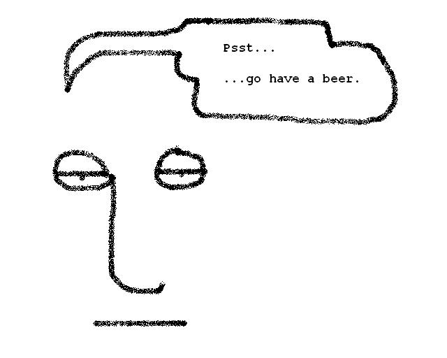 Listen To Your Conscience Posted by quo1 on June 13, 2013 Posted in: Cartoon, Humor, Musings. Tagged: beer, ego, employment, job, relaxation, work. 4 Comments