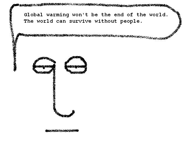 We Aren’t The World Posted by quo1 on July 28, 2013 Posted in: Cartoon, Humor, Musings. Tagged: apocolypse, conservation, end of the world, environment, global warming. 2 Comments