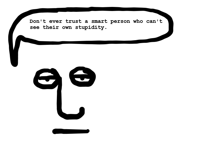Obviously Not THAT Smart Posted by quo1 on June 1, 2019 Posted in: Cartoon, Humor, Musings, Uncategorized. Tagged: art, insults, motivation, Relationships, self actualization, self awareness, self-improvement, trust. 1 Comment