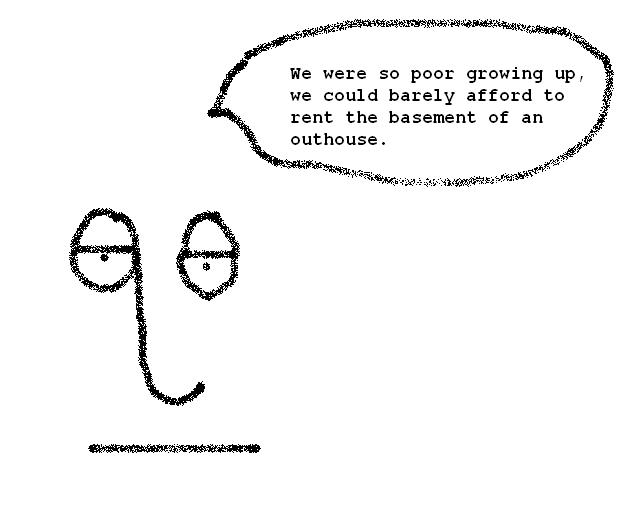You Think You Have It Bad? Posted by quo1 on February 3, 2013 Posted in: Cartoon, Humor. Tagged: childhood, housing, poor, poverty. Leave a comment