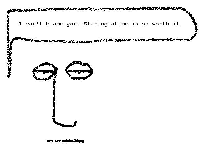 Caught You Looking Posted by quo1 on July 25, 2013 Posted in: Cartoon, Humor, Musings. Tagged: arrogance, nonverbal communication, people watching, self-confidence, staring, the mall. 1 Comment